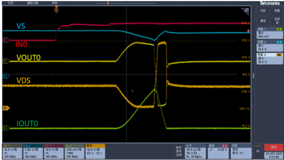 由于芯片可以承受的关断能量存在极限,所以在不同电感下允许关断的电流是不同的,电感越小,允许的关断电流就越大。最终芯片能承受的能力大小和不同工艺下MOSFET本身能力是息息相关的。CPS54D08的关断钳位波形如图2。