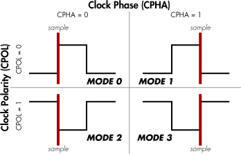 bio-potential系列中的大多数设备(除了ADS1293)都使用SPI Mode 1。这意味着时钟极性(CPOL)=0,时钟相位(CPHA)=1。主机MCU作为主控制器,ADS129x设备作为从机。SCLK的上升沿用于移动数据,下降沿用于锁定数据。当我们不与从机通信时,我们希望SCLK空闲时在低电平。
