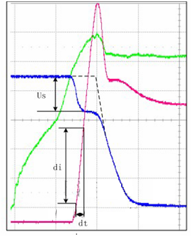 5)利用Us 和IGBT 开通时di/dt,计算杂散电感Ls。