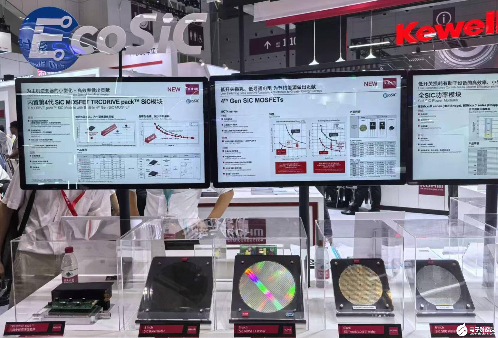 在PCIM展位上,罗姆半导体首次在中国展示了8英寸SiC Wafer和8英寸SiC衬底工艺。“2023年底,罗姆已经实现8英寸碳化硅衬底的量产,是由罗姆收购的德国SiCrystal公司完成,这里展示了8英寸SiC MOSFET Wafer产品。2025年,罗姆第五代SiC MOSFET将会在8英寸SiC晶圆上量产。”罗姆半导体(上海)有限公司深圳分公司技术中心高级经理苏勇锦在当天的媒体交流会上透露。