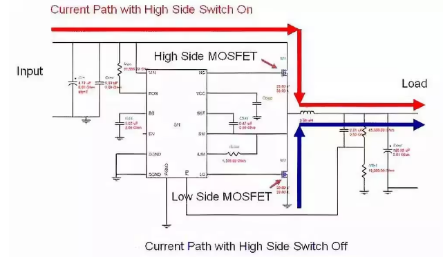 2) 占空比 (低侧FET,下管) = 1 – DC (高侧FET)