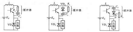 图a所示RC缓冲电路只适用于小容量的GTR(电流10 A以下)。图b所示充放电型R、C、VD缓冲电路用于大容量的GTR。图c所示阻止放电型R、C、VD缓冲电路,较常用于大容量GTR和高频开关电路,其最大优点是缓冲产生的损耗小。**