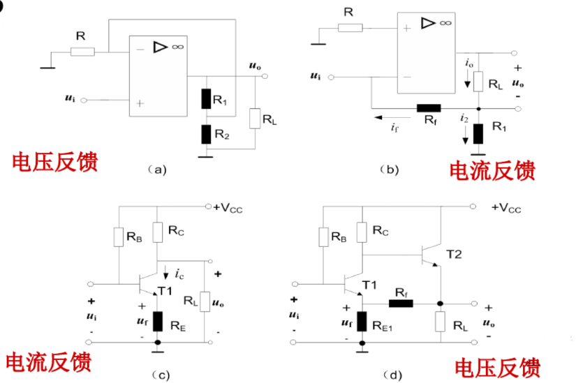 根据电压、电流反馈定义直接判断。即反馈信号的大小与输出电压成比例时是电压反馈;与输出电流成比例就是电流反馈。