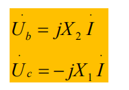 为Ub和Uc反相,说明X1与×2具有相同的电抗特性。
