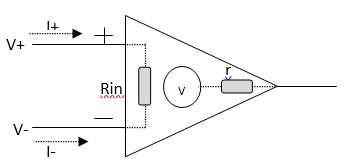 在多数的常规设计中,我们使用运放的理想模型,忽略其内部结构。把它当作一个“具有放大作用的元件”,接上电源,便可以让它发挥放大的作用。所谓理想的运放,它的输入阻抗无穷大,输出阻抗为零,如图1。