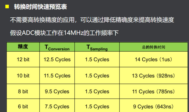 ADC的分辨率通常以输出二进制数的位数表示,位数越多,分辨率越高,一般来说分辨率越高,转化时间越长。