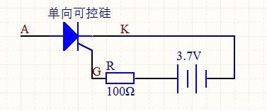 不过这种元件也自有他的导通方法,需要先提高G点的电位,具体操作可以采用下面这个电路图,之后再来测试一下A和K之间的压降,看看其是否导通,这里最好不要直接把电源连在G和K之间,中间最好串个电阻。