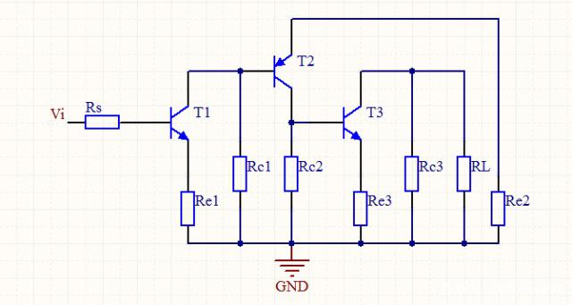 这个三个放大倍数的公式背下来倒不是很难,难点是怎么去运用,这次我找了一个三级放大电路,交流电路如图所示。