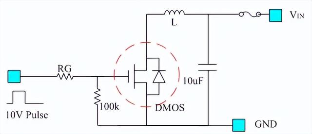 图1给出了单脉冲雪崩测试的原理图,对待测器件的Gate施加开启信号,器件导通,电感L开始储能,当电感储能达到一定值以后,关闭Gate,此时电感能量只能通过雪崩电流来泄放。