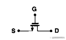 图1是一个n型MOSFET的符号,图中表示了三个端口:栅(G)、源(S)和漏(D)。这种器件是对称的,因而源和漏可以互换。作为开关工作时,如果栅电压VG是高电平,晶体管把源和漏连接在一起;如果栅电压为低电平,则源和漏是断开的。