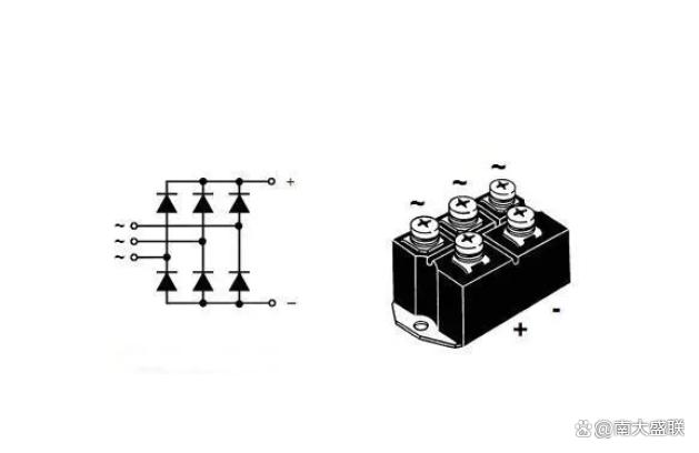 三相整流桥的工作原理与单相整流桥类似。当输入信号的某个相位为正半周期时,相应的两个二极管导通,而另外四个二极管截止。