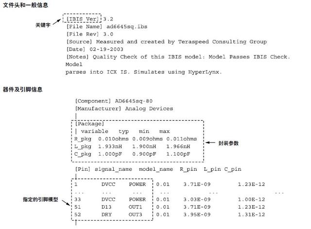 IBIS文件不是可执行文件;它是收集所有描述器件电器性能数据的文件,能在仿真器中使用。IBIS文件包括三个主要部分: