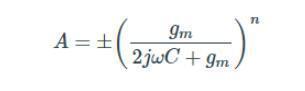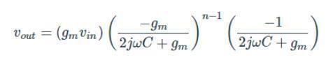 我们已经描述了驱动程序和滤波器部分的传递函数。现在我们准备计算开环增益。对于n个滤波器级,我们可以结合之前的结果(驱动器、n-1个中间阶梯滤波器部分和一个输出滤波器部分),并找到输出电容的左侧为正: