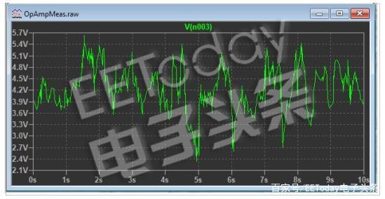 低噪声运算放大器数据表通常有一个数字,显示0.1 Hz至10 Hz频段内10秒的示波器噪声迹线。使用现成的工具,你可以将此跟踪数字化并将其转换为CSV文件。然后,CSV文件用于指定PWL电压源。这些图显示了数据表图和来自带有PWL源的瞬态分析的相应图。