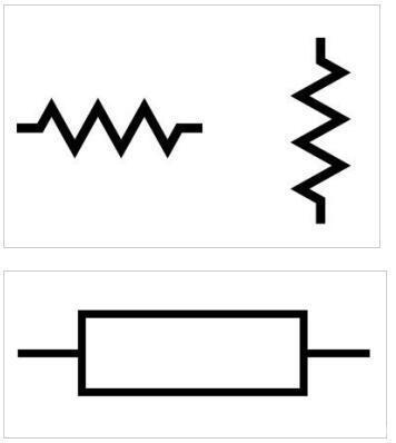 电阻器是非常常见的电子元件。在美国它们通常显示为锯齿线,但国际标准将它们显示为矩形。