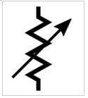 与电压相关的电阻器或变阻器看起来类似于可变电阻器,但在其上方有一条线而不是箭头。