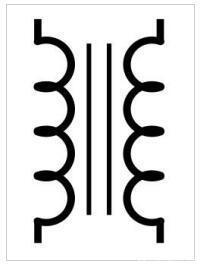 变压器通常带有符号表示符号的符号表示变压器的工作原理。它看起来像两个并联的电感线圈,它们之间有一些东西,通常是一两条线。
