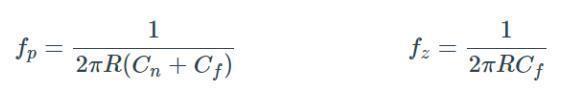需要注意的是 为β(j)创建一个零频率 ,也降低了现有的极点频率 p(β的极/零点变为1/β的零/极点)。一个易于可视化技术指定 以便将 定位在 X处,如在图 3(b)中。这将ROC从大约40dB / dec降低到大约30dB / dec,从而确保相位裕度约为45°。为了找到所需 ,我们注意到从图 3(b)中该 等于p和ft的几何平均值,即 = ( p × t)1/2。使用方程(7)的表达式并简化得到