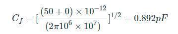 迭代为 = [(50 + 0.892×10 -12 /(2π10 6 ×10 7)] 1/2 = 0.900 pF。另一次迭代再次给出0.900 pF,所以我们停在这个值。接下来,让我们通过PSpice验证我们的发现。使用图5(a)的电路得到图5(b)的曲线 。