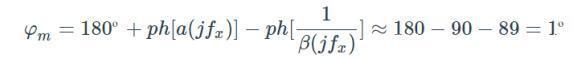 在未补偿情况下,我们测量 X = 178.4kHz,并且相位角ph [ a(j X) ]≈-90°和PH [ 1 /β(j X)]≈89.0°,因此,相位裕度是