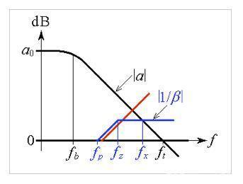 物理上,C n和R在反馈回路内建立极点频率。因此,围绕环路传播的信号将必须与两个极点竞争,一个是由于运算放大器而另一个是由于C n,存在相移接近180°的风险并因此危及电路稳定性。我们可以在图2(b)中更好地看到这一点,这显示了开环增益的曲线图 |a|和反馈因子的倒数| 1 /β(j) |,其中