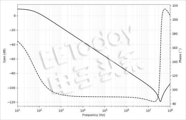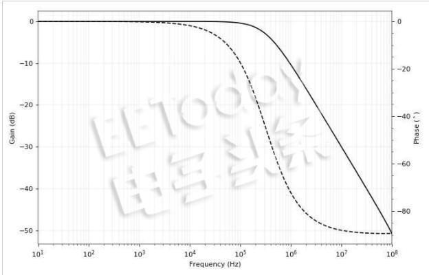 只有在10 MHz左右之后,我们才能看到相移低于180°的变化,这是我们所期望的,因为共发射极配置是一个反相放大器。忽略早期效应,放大器的输出阻抗为R2 =3kΩ,相当高。在输出端放置一个并联电容器。在这个阶段发生什么?