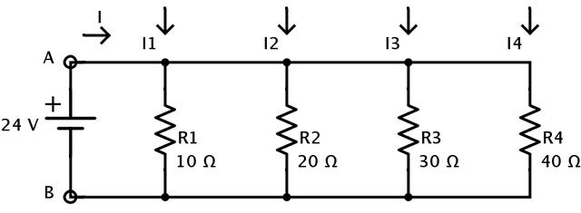 ITOTAL=I1+I2+I3+I4=2.4+1.2+0.8+0.6=5A