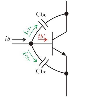结电容的存在使得基极电流ib被旁路。从而使得真正流过发射结的基极电流ib′减小。而只有真正流过发射结的基极电流才会被放大。