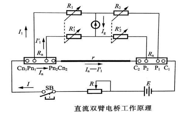 直流双臂电桥又叫凯尔文电桥,用来测量10-5~1Ω电阻。直流双臂电桥是在单臂电桥的基础上,设法消除连接引线和接触电阻的影响而构成的。
