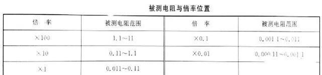 4、 被测电阻与倍率位置的选择见下表。