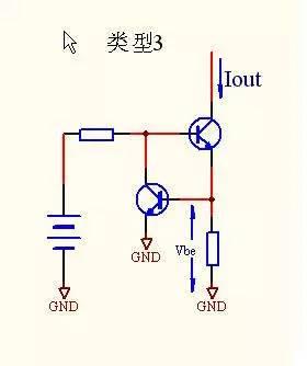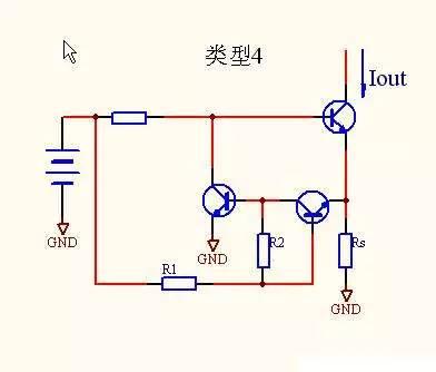 类型2,这是使用运放与Vref(2.5V)一体化的并联稳压器电路,由于这种电路的Vref高达2.5V,所以电源利用范围较窄类型3,这是用晶体管代替运放的电路,由于使用晶体管的Vbe(约0.6V)替代Vref的电路,因此,Vbe的温度变化毫无改变地呈现在输出中,从而的不到期望的精度类型4,这是利用对管补偿Vbe随温度变化的电路,由于检测电压也低于0.1V左右,应此,电源利用范围很宽类型5,这是利用J-FET的电路,改变Rgs 可使输出电流达到漏极饱和电流IDSS,由于噪声也很小,因此,在噪声成为问题时使用这种电路也有一定价值,在该电路中不接RGS,则电流值变成IDSS,这样,J-FET接成二极管形式就变成了“恒流二极管”。
