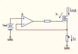 注:Is=IB+Iout=Iout(1+1/hFE)其中1/hFE为误差若输出级使用晶体管则电流检测时会产生基极电流分量这一误差,当这种情况不允许时,可采用图6所示那样采用FET管