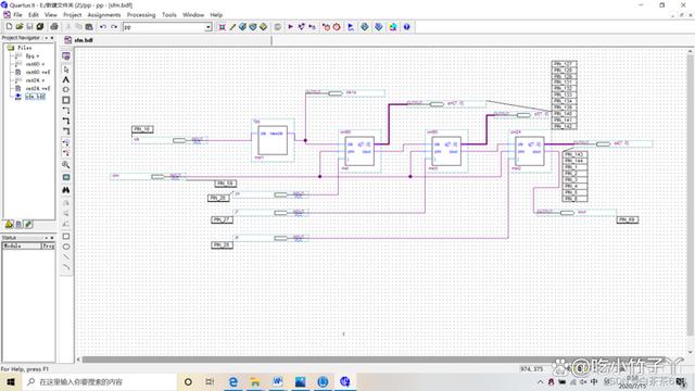 在电脑上设计好的工程,进行编译,编译成功后进行仿真,仿真成功后生成元件并加入到bdf中,找出相应的输入输出并与模块连接好,置顶并编译,提前锁好相应的管脚。在实验室使用Quartus 软件调试,在软件中open project打开设计好的工程,还需要对bdf进行一次置顶编译下载到实验箱。