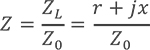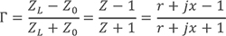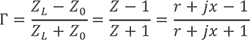 当中的Γ代表其线路的反射系数(reflection coefficient)Z是归一负载值,即ZL/ Z0。当中,ZL是线路本身的负载值,Z0是传输线的特征阻抗(本征阻抗)值,通常会使用50Ω。