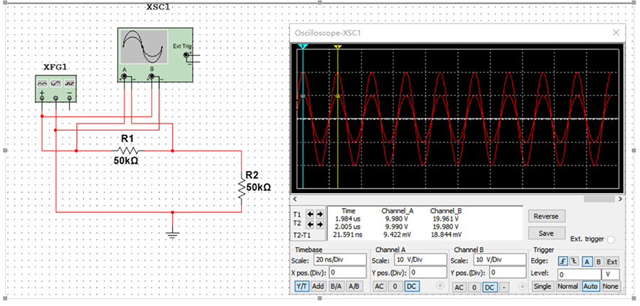 如果电路中只有电阻,它只会影响信号的幅度,如下图所示: