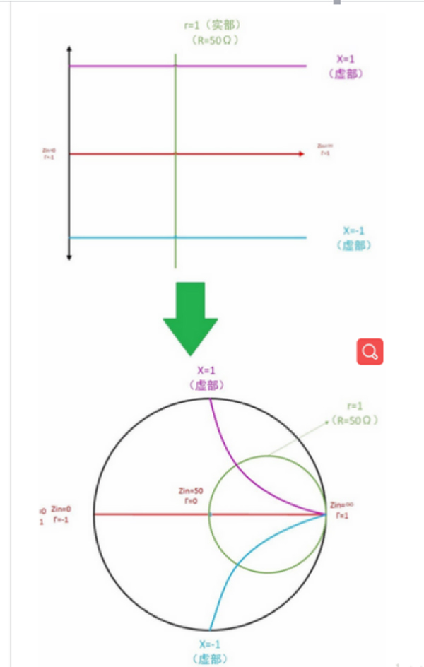 下面就开始方便我们去记住Smith圆图,我们将进行"变身“: