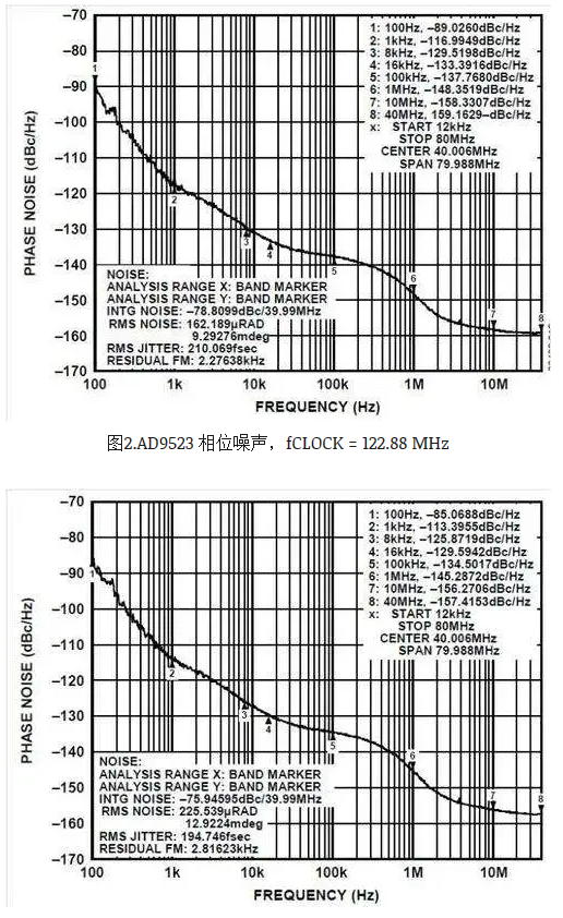 图3.AD9523 相位噪声,fCLOCK = 184.32 MHz