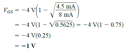 请注意,VGS 的 ID 级别 = VP/2 = -4V/2 = -2V 如图 5.15 所示