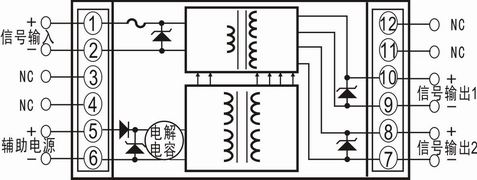 ● 专用一路4-20mA输入,两路4-20mA输出隔离分配技术