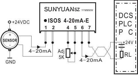 ISO 4-20mA-E(SIP12 Pin封装)和ISOS 4-20mA-E(SIP7 Pin)两线制无源型4-20mA模拟量隔离调理控制器,可将输入有源4-20mA电流信号转换成隔离的无源控制信号输出,用来控制二线制回路供电(防爆方式)4-20mA电流环路,实现传感器信号采集与模拟量输入接口有源负载的现场匹配,有效解决了采集有源4-20mA电流信号与二线制电流环供电回路接收口电源冲突问题。该方案采用高效能的回路窃电技术,无需独立电源供电,使用非常方便,用户可通过调节电位器进行ADJ校正。