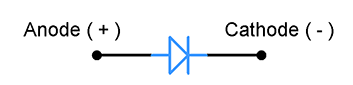 这是PN结二极管或通常称为二极管的符号,其中它有两个端子。正极称为阳极,负极称为阴极。在这里,当二极管的阳极端子连接到电源的正极端子和阴极连接到电源的负极端子时,二极管通过它传导电流。这种情况被称为二极管的正向偏置,电流自由流过二极管。