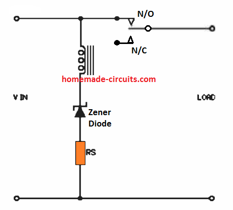 继电器和适当选择的齐纳二极管足以为任何所需的应用创建精确的低压或欠压切断保护电路。电路图如下所示:
