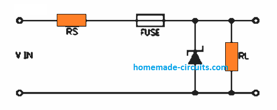 通过在负载上连接一个额定值正确的齐纳二极管,可以使用额定值合适的保险丝来长时间处理预期的负载电流。在这种情况下,假设输入电压增加到超过齐纳击穿电压的程度 将迫使齐纳二极管导通。这将导致几乎瞬间熔断保险丝的电流突然增加。