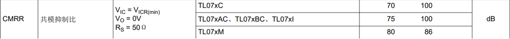 以TL072C为例,CMRR=100dB(TYP),Vos=3mV(TYP)。