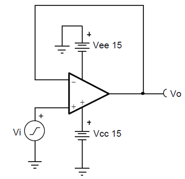 在一个跟随器电路中(如下图),输入一个正弦波Vi,对于输出波形Vo是一个跟随Vi的正弦波,对于Vo和Vi波形从时域上来看,两者的差异程度即是失真度。但从实际应用的角度,很难去从时域的角度去衡量Vo和Vi两者的差异程度,所以在频域上,定义了一种描述正弦信号失真度的参数,称为总谐波失真(Total Harmonic Distortion, THD)。