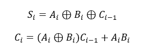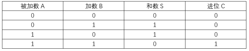 | 被加数A | 加数B | 进位输入Ci | 和数S | 进位输出Co |