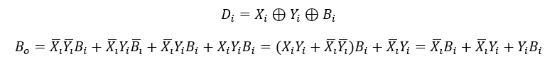 定义Nbit被减数x,减数Y,差为D(difference);来自低bit的借位Bi,想高bit借位Bi+1,i为bit序号。