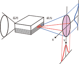 由于芯片内的共振器(有源层和条形电极)的垂直方向是以数10nm级,水平方向是以数μm级制作而成,因此一般来说,远场图在有源层上的垂直方向比水平方向要大。
