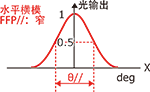 光电二极管的受光面朝向激光芯片的发光面,在以发光点为中心的圆周上使之移动,测量正面为0度时的角度和光强度的关系。