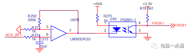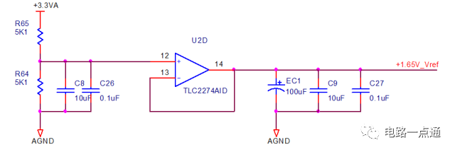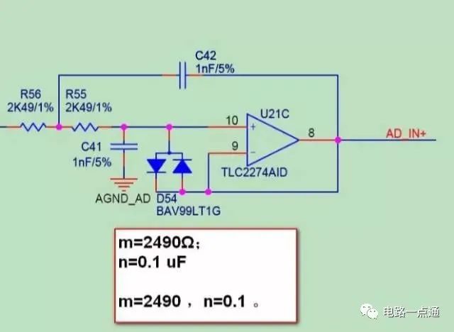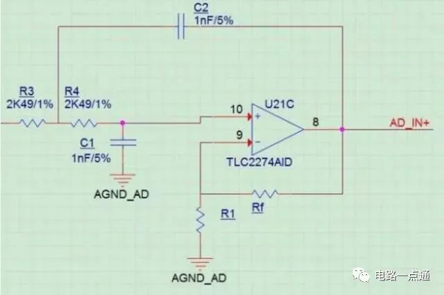 该电路的设计要点是:在满足合适的截止频率的条件下,尽可能将R233和R230的阻值选一致,C50和C201的容量大小选取一致(两级RC电路的电阻、电容值相等时,叫赛伦凯电路),这样就可以在满足滤波性能的情况下,将器件的种类归一化。其中电阻R280是防止输入悬空,会导致运放输出异常。